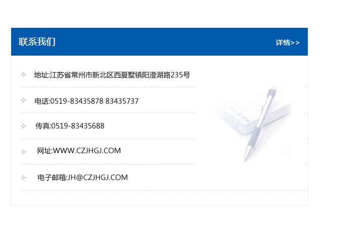 地址:常州市新北區友邦商務大廈1幢16、17層  電話:0519-85101652  傳真:0519-85112595  郵編:213022  網址:www.cz-jiayue_cn.xdo-china.com  郵箱:xiajifengaa@163.com